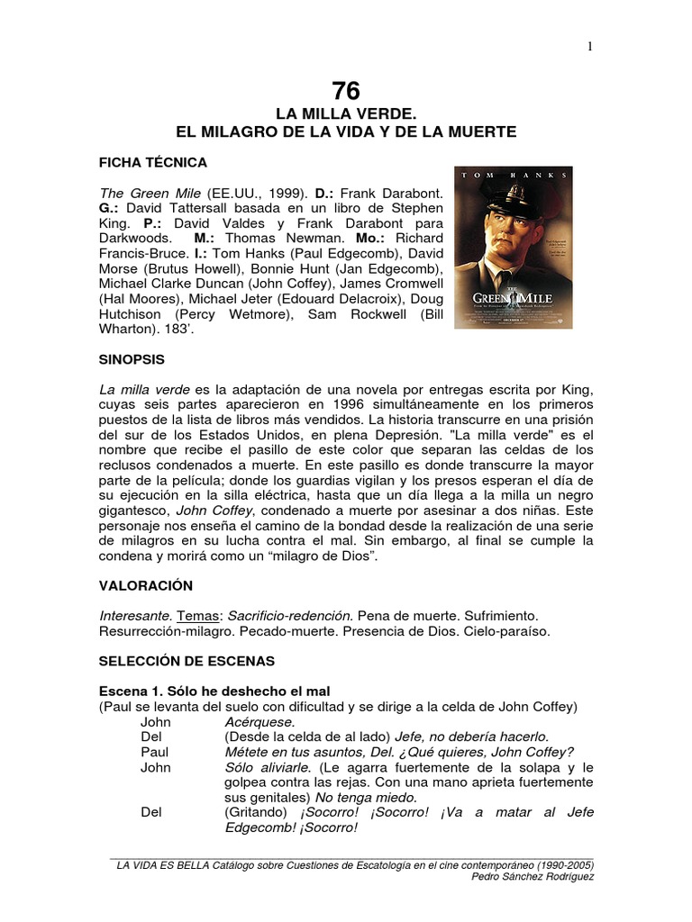 La milla verde pdf : Octubre de mil novecientos treinta y dos, penitenciaría de cold mountain. Los condenados a muerte aguardan el momento de ser conducidos a la silla. La milla verde es la adaptación de una novela por entregas escrita por king, cuyas seis partes aparecieron en 1996 simultáneamente en los primeros puestos de la lista de libros más vendidos. Verde / the green mile pdf es el favorito de muchas personas.